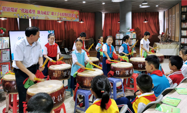 “孩子们,今年是中国共产党成立多少周年?”“100周年!”翟镇煤矿老党员徐西银在“爱心托管”职工子女服务中心暑期托管班开讲“党史教育课”。